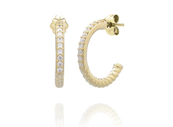 Sterling Silver Gold Vermeil Cubic Zirconia Twisted Semi-Hoop Post Earrings.