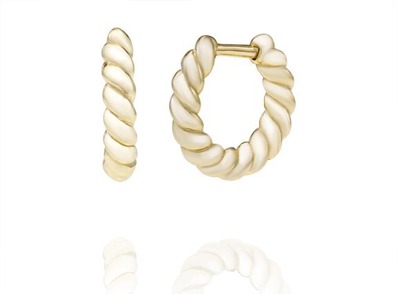 Sterling Silver 14kt Gold Vermeil Twisted Hoop Earrings. Clasp back for a secure fit.
